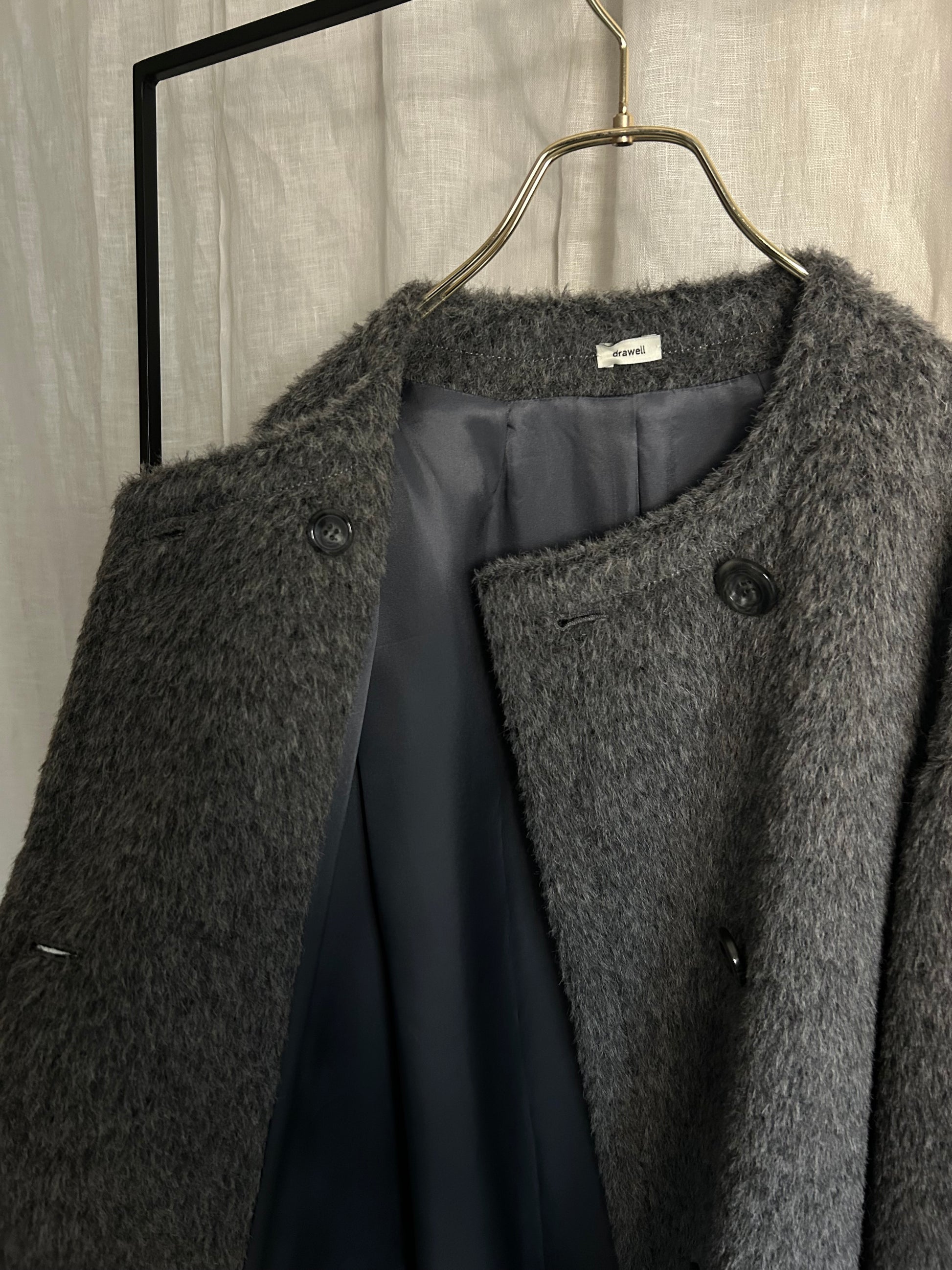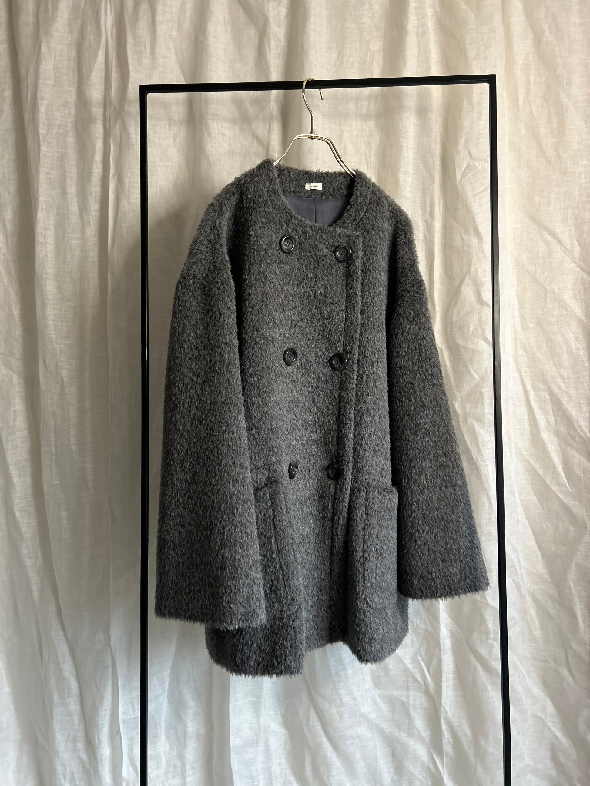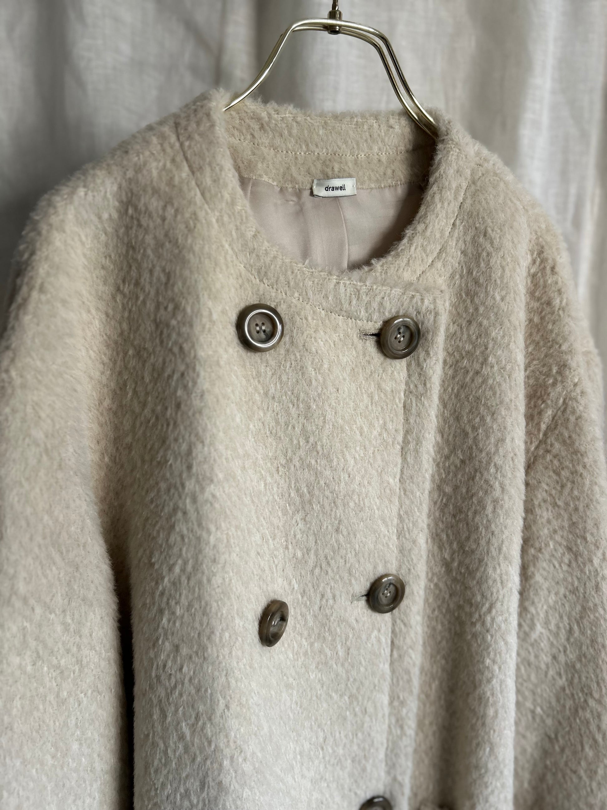 アルパカシャギーノーカラーAラインコート