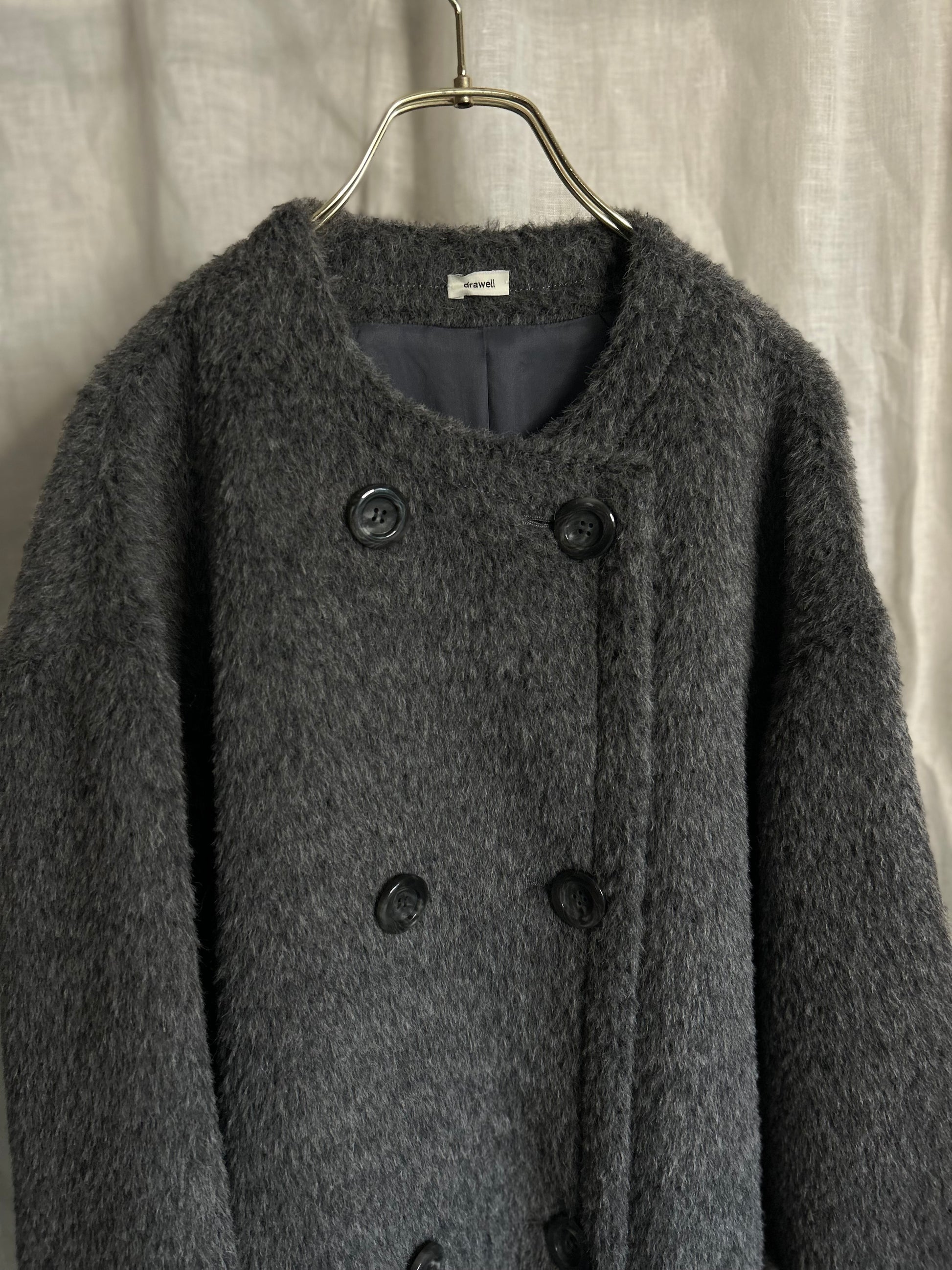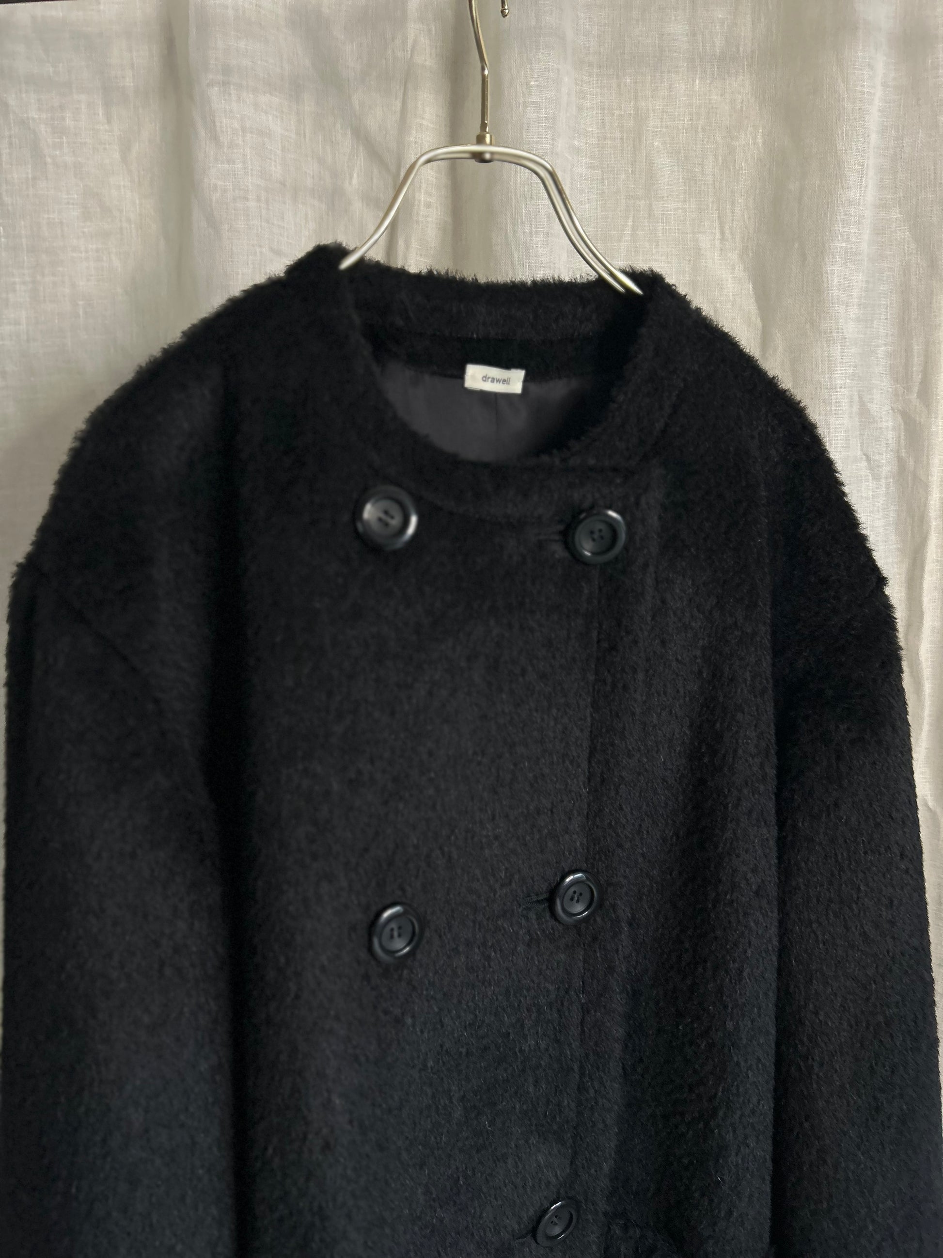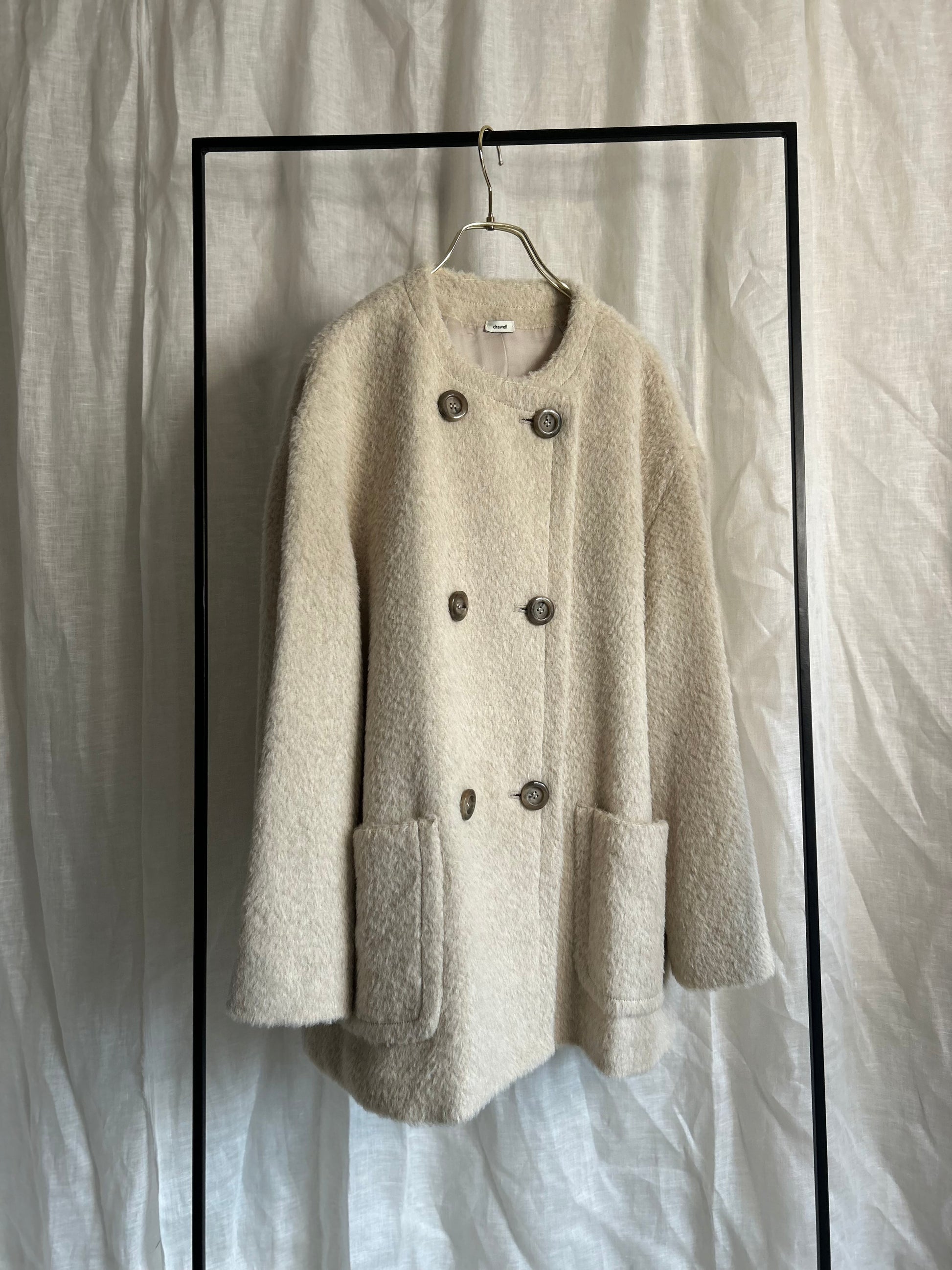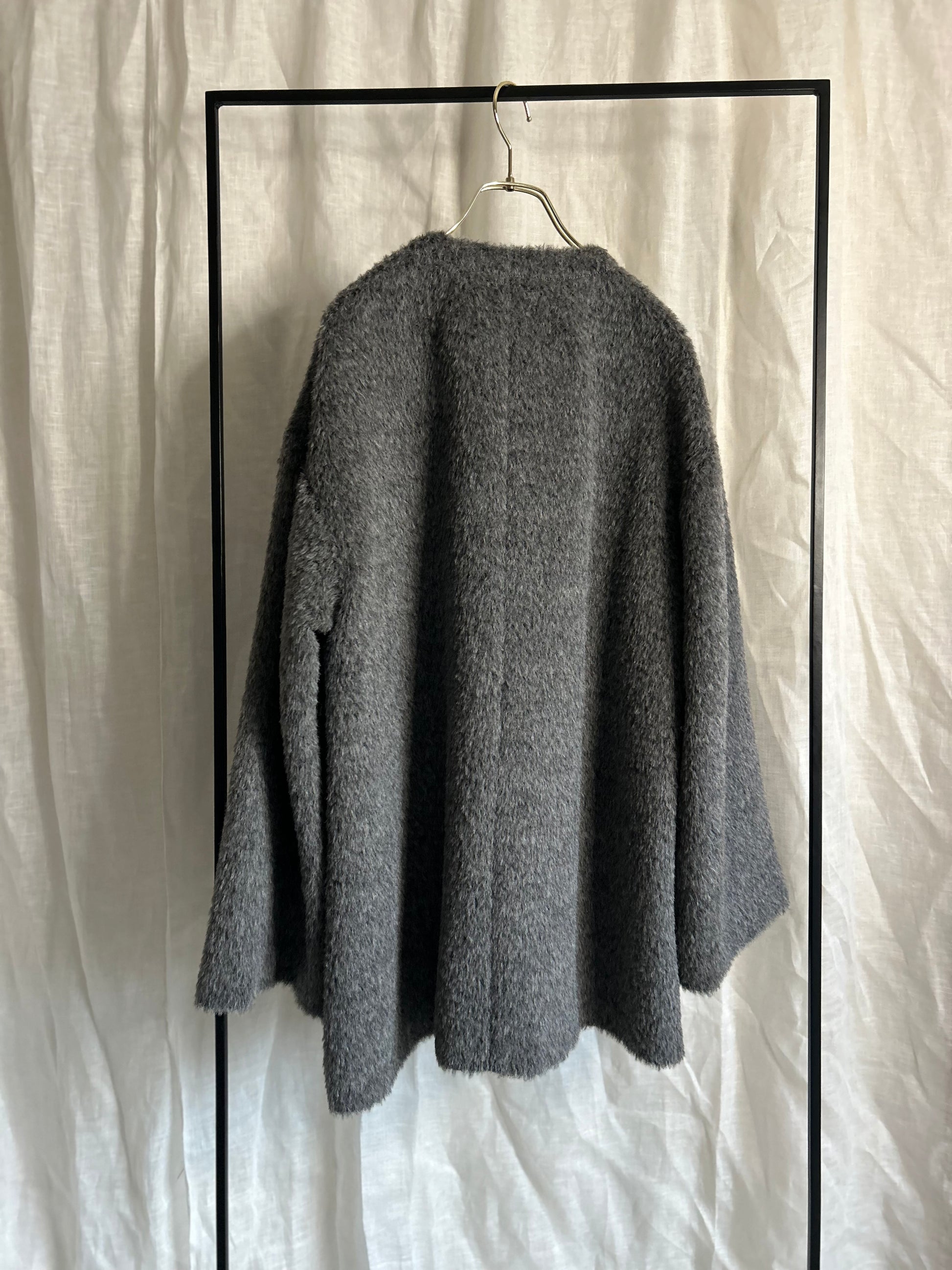 アルパカシャギーノーカラーAラインコート