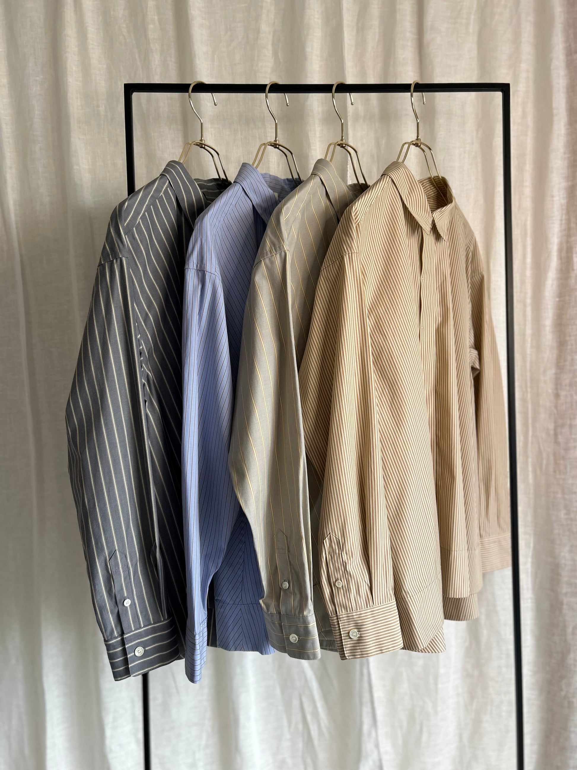 drawell定番でアイコンのバックフレアーシャツ。2025秋冬の新色は4色展開です。